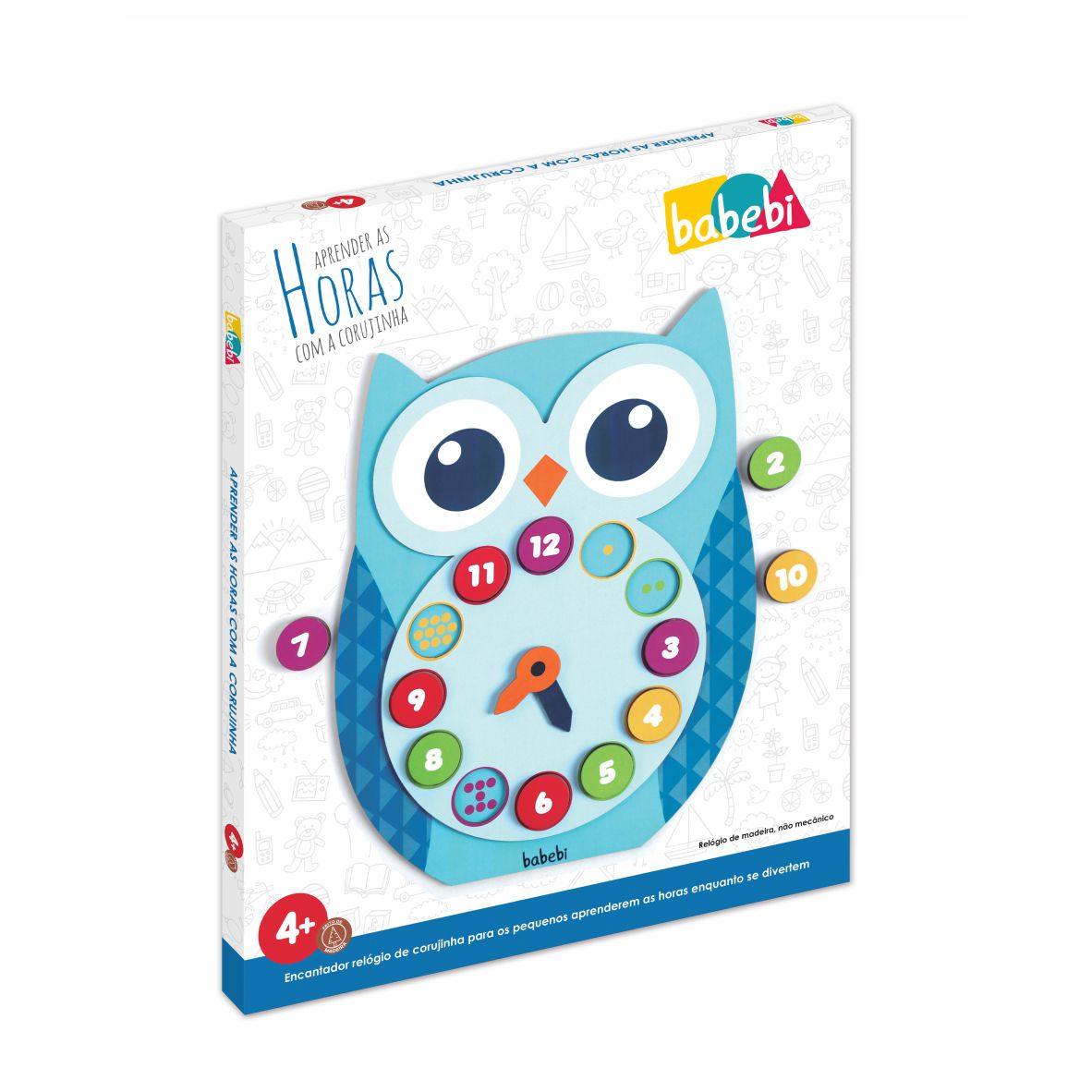 O Relógio Educativo Aprendendo as Horas Com a Curujinha modelo 6007 da Babebi, acompanha 1 relógio não mecânico no formato de coruja e 12 peças com os números de 1 a 12, acondicionadas em uma caixa de papelão, e o brinquedo tem como principal objetivo, fazer com que os pequenos aprendam as horas de maneira divertida, lúdica e criativa.