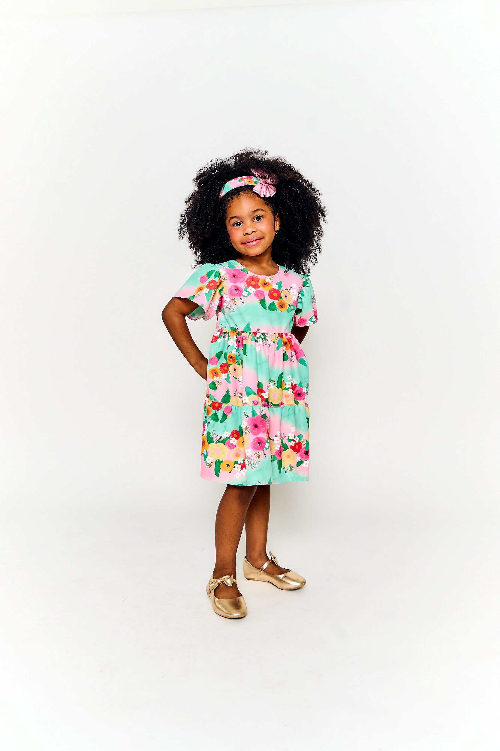 VESTIDO PINCELADA DE FLORES VERDE E ROSA - Alphabeto